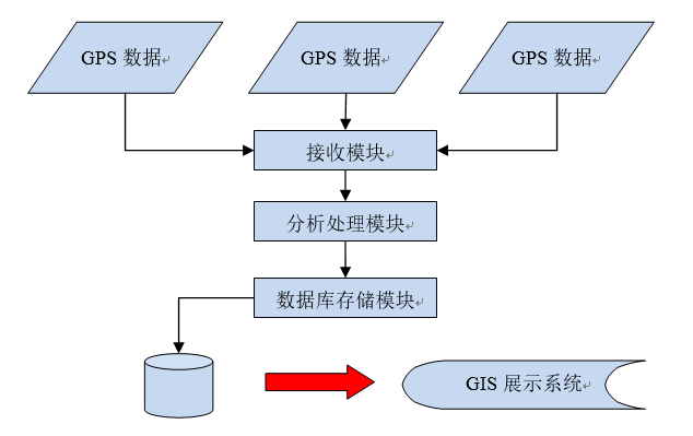 GPS数据接收存储程序是整个GPS平台的核心部分,数据接收和存储的精确程度直接决定数据在GIS系统上的展现情况。因此该数据接收存储程序需要同时处理上千甚至上万条GPS终端报送的数据,对程序的健壮性、稳定性有很高的要求。系统设计中将采用成熟的多线程处理和滑动门技术进行设计,提高系统性能。GPS数据接收流程如下: